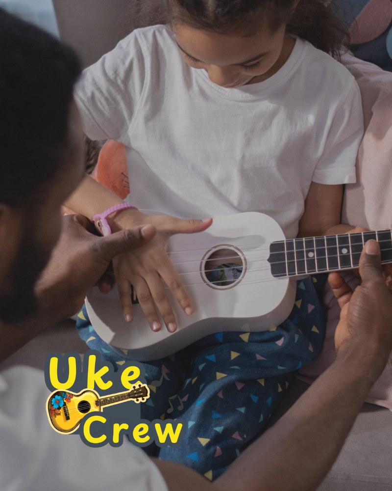 Uke Crew introduces young musicians to music through fun, social, and performance-based group ukulele classes. Each class combines clear skill-building with games and creative play, helping students feel confident while learning the basics of the ukulele.